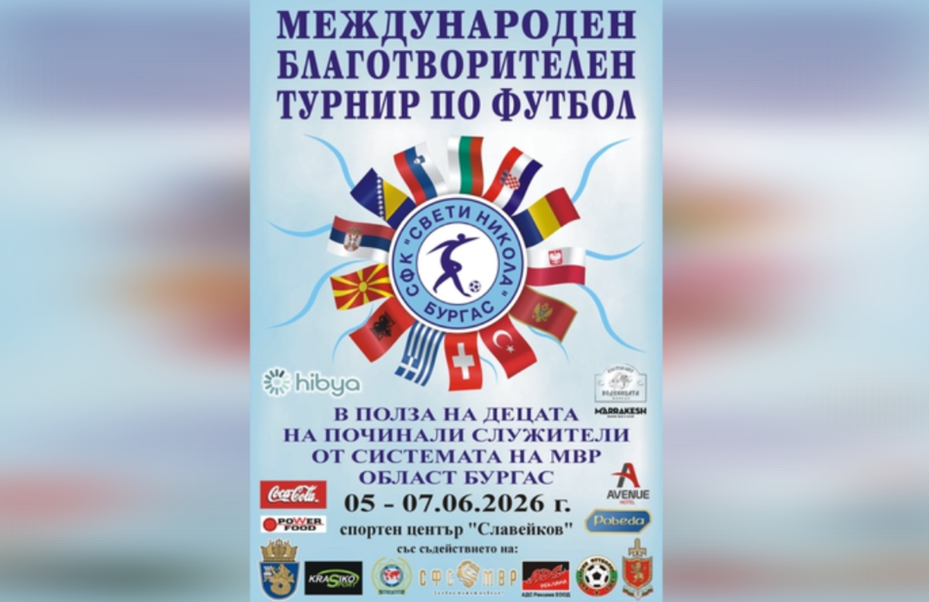 Zur Unterstützung der Kinder von Mitarbeitern des bulgarischen Ministeriums für Inneres, die bei der Ausübung ihrer dienstlichen Pflichten in der Region Burgas verstorben sind, wird vom 5. bis 7. Juni 2026 ein internationales Futsal-Turnier im Slaveykov Sportzentrum in Burgas stattfinden.
